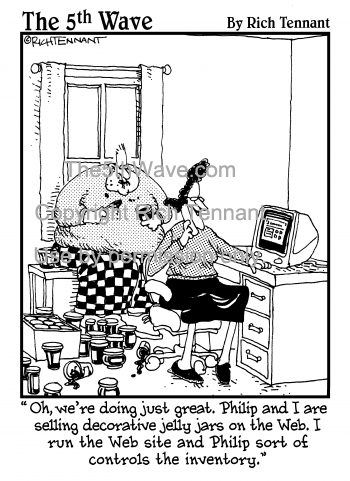 "Oh, we're doing just great. Philip and I are selling decorative jelly jars on the Web. I run the Web site and Philip sort of controls the inventory."