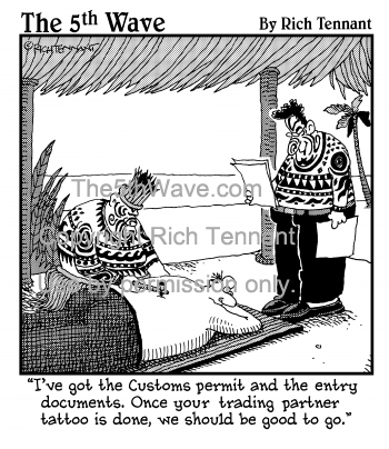 "I've got the Customs permit and the entry documents. Once your trading partner tattoo is done, we should be good to go."