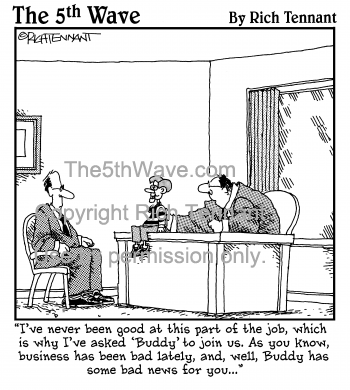 "I've never been good at this part of the job which is why I've asked 'Buddy' to join us. As you know, business has been bad lately, and well, Buddy has some bad news for you
