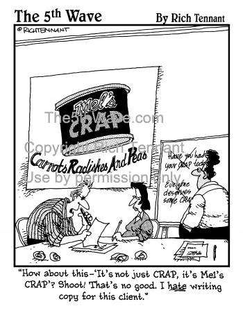 "How about this-'It's not just CRAP, it's Mel's CRAP?' Shoot! That's no good. I hate writing copy for this client."