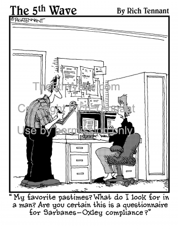 "My favorite pastimes? What do I look for in a man? Are you certain this is a questionnaire for a Sarbanes-Oxley compliance?"