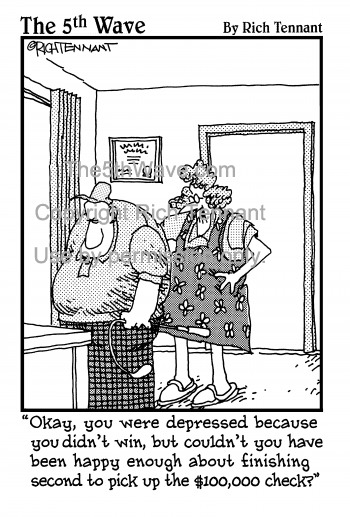 "Okay, you were depressed because you didn't win, but couldn't you have been happy enough about finishing second to pick up the $100,000 check?"