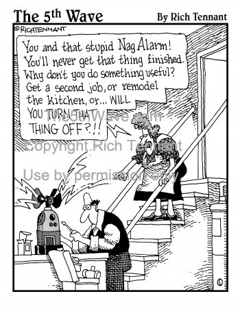 "You and that stupid Nag Alarm! You'll never get that thing finished. Why don't you do something useful? Get a second job, or remodel the kitchen, or