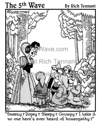 "Sneezy? Dopey? Sleepy? Grumpy? I take it no one here's ever heard of homeopathy?"