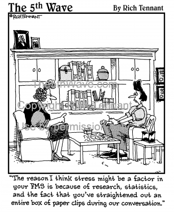 "The reason I think stress might be a factor in your FMS is because of research, statistics, and the fact that you've straightened out an entire box of paper clips during our conversation."