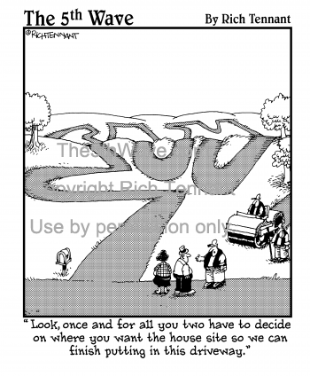 "Look, once and for all you two have to decide on where you want the house site so we can finish putting in this driveway."