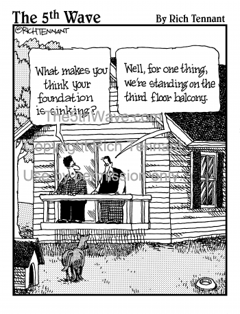 "What makes you think your foundation is sinking? Well, for one thing, we're standing on the third floor balcony."