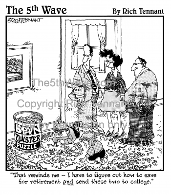 "That reminds me. I have to figure out how to save for retirement and send these two to college."