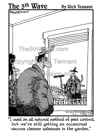 "I used an all natural method of pest control, but we're still getting an occasional vacuum cleaner salesman in the garden."