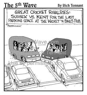 (Great Cricket Rivalries: Sussex vs. Kent for the Last Parking Space at the Wicket 'N Bails Pub.)