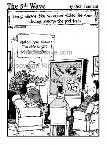 (Doug shows the vacation video he shot diving among the pool toys) "Watch how close I'm able to get to the Noodles."