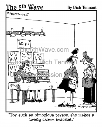 "For such an obnoxious person, she makes a lovely charm bracelet."