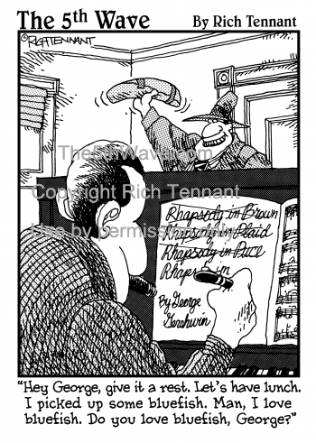 (Rhapsody in... - By George Gershwin ) "Hey George, give it a rest. Let's have lunch. I picked up some bluefish. Man, I love bluefish. Do you love bluefish, George?"