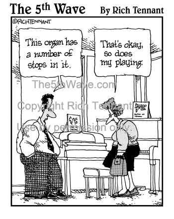 "This organ has a number of stops in it." "That's okay, so does my playing."