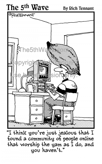 "I think you're just jealous that I found a community of people online that worship the yam as I do, and you haven't."