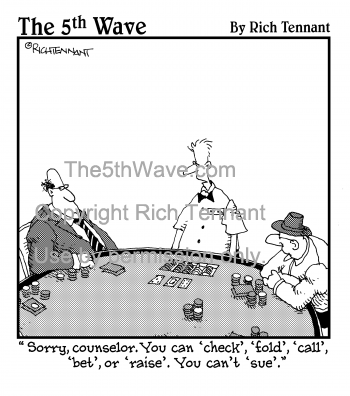 "Sorry, counselor. You can 'check', 'fold', 'call', 'bet', or 'raise'. You can't 'sue'."
