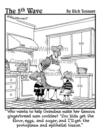 "Who wants to help Grandma make her famous gingerbread man cookies? You kids get the flour, eggs, and sugar, and I'll get the protoplasm and epithelial tissue.
