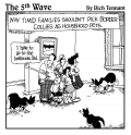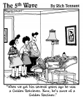 (Why Timid Families Shouldn't Pick Border Collies as Household Pets) "I have to go to the bathroom, Dad." |  (Bernice Crochets an Afghan) |  "Basically, it's a car-chasing network, but it's also much more. We discuss mail carriers, UPS trucks, vacuum cleaners..." |  "You the couple interested in adopting a German Shepherd?" |