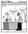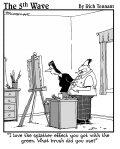 "His style isn't really surreal, although his prices are." |  The Refrigerator Magnet Museum Of Art |  "Can't you wait until after the reception to examine the stitching?" |  "So how old were you when you realized that metallic thread didn't come from steel wool?" |
