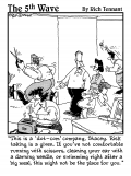 (Well - everyone seems to be in a good mood.) |  "This is a dot-com company. Risk taking is a given. If you're not comfortable running with scissors, cleaning your ear with a darning needle, or swimming right after a big meal, this might not be the place for you." |  "You ever get the feeling some of the deputies are beginning to lose focus?" |