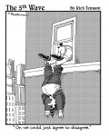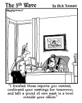 "I assume everyone on your team is on board with the proposed changes to the office layout." |  "This is a dot-com company. Risk taking is a given. If you're not comfortable running with scissors, cleaning your ear with a darning needle, or swimming right after a big meal, this might not be the place for you." |  "You ever get the feeling some of the deputies are beginning to lose focus?" |