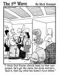 (Free Beer) "...and what makes you think you're a leader of men all of a sudden?" |  "The first thing you need to know about coaching Little League is that it takes patience, understanding their limitations, and allowing them to feel like they're participating. And that's just the parents |  "I think Dick Foster should head up that new project. He's got the vision, the drive, and let's face it, that big white hat doesn't hurt either." |  "Remember when Bruce wanted to 'rally the troops,' we all just got a memo in email?" |