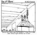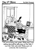 "For 30 years I've put a hat and coat on to make sales calls and I'm not changing now just because I'm doing it on the Web from my living room." |  "Oh, we're doing just great. Philip and I are selling decorative jelly jars on the Web. I run the Web site and Philip sort of controls the inventory." |  "Listen up - I brought in a consultant to help figure this thing out. Old MacDonald, these are the boys. Boys, say hello to Old MacDonald." - Quack. Quack. - Moo. Moo. - Oink. Oink. |  (Swim Consultant) "Try to keep your head above water! Swim parallel to the beach until you're out of the riptide! Keep your insweep at a 60 degree diagonal and your head pointed forward!" |