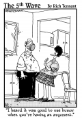 "Oh, great - another brain!" |  "I knew they were writing their own vows, but I expected quotes from Robert Frost poems, not the Geneva convention." |  "I heard it was good to use humor when you're having an argument." |  "When I asked you to put on some mood music, 'On Wisconsin' wasn't the mood I was going for." |