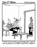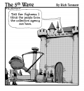 "Our plan is to pay off the rest of it when we pay off our college loan." |  (Whenever Carl used his credit card, the results were always disastrous.) |  "Tell Her Highness I think the people from the collection agency are here." |  "You have the first case of identity theft I've ever seen where the thieves actually returned the identity because the credit was so bad." |
