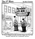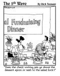 (4 food franchises to avoid investing in. International House of Broccoli, Squid-on-a-Stick, Liverland, McOffals.) |  "...and don't tell me I'm not being frugal enough. I hired a man last week to do nothing but clip coupons!" |  "We're trying to save money by buying in bulk. Caviar?" |  (Fundraising Dinner) "Does the check writing pen go above the dessert spoon or next to the salad fork?" |