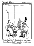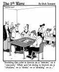 (After 9 years of dating a word search fanatic, Darlene creates her own word search puzzle) "How are you doing? Are you getting' any of these?" |  "You're right - I probably will be the only one on the dirt track circuit to own a carburetor cozy." |  "The object of backgammon is to get all of your checkers on this side of the board without me screaming and tipping your chair into the pool." |  "Doubling the cube is known as a 'beaver,' or a 'raccoon.' What you're doing is known as a 'chicken,' or a 'dodo,' or a 'donkey,' or a ... " |