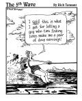 "You're right - I probably will be the only one on the dirt track circuit to own a carburetor cozy." |  "The object of backgammon is to get all of your checkers on this side of the board without me screaming and tipping your chair into the pool." |  "Doubling the cube is known as a 'beaver,' or a 'raccoon.' What you're doing is known as a 'chicken,' or a 'dodo,' or a 'donkey,' or a ... " |  "I said this is what I get for letting a guy who ties fishing lures make me a pair of drop earrings!" |