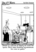 "Okay, we all know how this is done. There are 4 of you and only 3 regional manager openings. Margaret - start the music." |  "The strings on a ukulele are G, C, E, and A. A good way to remember that is with the phrase, 'Giant Coackroaches Eat A lot'. " |  "Numbers to an accountant are like notes to a composer, and Janet, these accounts are not music to my ears." |  "I don't get it. I'm playing a legendary jazz musician and the director keeps telling me to stick to the script and stop improvising." |