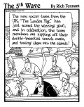 "The new soccer team from the U.K., 'The London Fog,' has just scored the winning goal, and in celebration, the team members are ripping off their double-breasted trench coats, and tossing them into the stands!" |  "Your serve is basically good, it's just you're doing something funny right at the very end." |  (Despite his initial confusion with the name, Scott finished 13th in the Ironman competition.) |  (Boat For Sale) "Very clever, but how much do you want for the boat without the bottle?" |