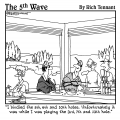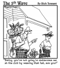 "I birdied the 5th, 6th and 10th holes. Unfortunately it was while I was playing the 3rd, 7th and 12th hole." |  "My golf teacher is also a psychiatrist. I still play as badly as I always have, but now I blame my mother and father for it." |  "Betty, you're not going to embarrass me at the club by wearing that hat, are you?" |  (Home - Visitor) "Hey! When I said take out the person who's making us lose, I didn't mean the score keeper!" |