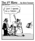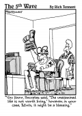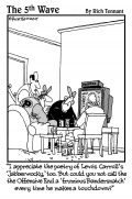 "I appreciate the poetry of Lewis Carroll's 'Jabberwocky' too. But could you not call the Offensive End a 'frumious Bandersnatch' every time he makes a touchdown? |  "You know, Socrates said, 'The unexamined life is not worth living,' however, in your case, Edwin, it might be a blessing." |