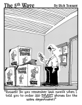 "Russell! Do you remember last month when I told you to order 150 SMART phones for the sales department?" |  "Okay, a patient is admitted with a comatose Blackberry, a beeping pager, and a failing iPod - what do you do?! Think! Think!" |  "It's a fully furnished 3 bedroom house that's designed to fit perfectly over your iPod." |  (Kenneth buys his first Smart phone.) "Exercise More." |