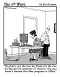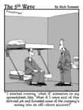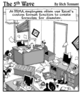 "This program's really helped me learn a new language. It's so buggy I'm constantly talking with overseas service reps." |  "No that's not the icon for Excel, it's the icon for Excuse, the database of reasons why you haven't learned the other programs in Office." |  "I started running 'what if' scenarios on my spreadsheet, like, 'What if I were sick of this dirtwad job and funneled some of the company's money in to an off-shore account?'" |  (At FEMA, employees often use Excel's custom format function to create formulas for disaster.) |