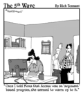 "Once I told Mona that Access was an 'argument' based program, she seemed to warm up to it." |  "I hate when you bring 'Office' with you on camping trips." |  "Are you using that 'clone' tool again?" |  "Yes, I know how to query information from the program, but what if I just want to leak it instead?" |